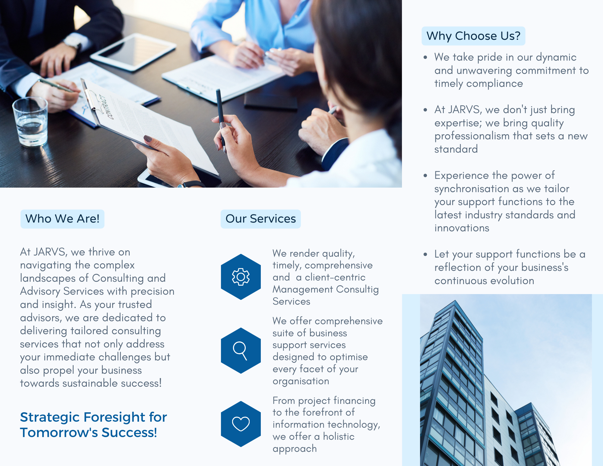 JARVS is a company having specialization in rendering advisory and consulting services in the areas pertaining to business management, Corporate Governance, Human Resource, Accounting, business continuity management, Internal controls, and Corporate Finance.